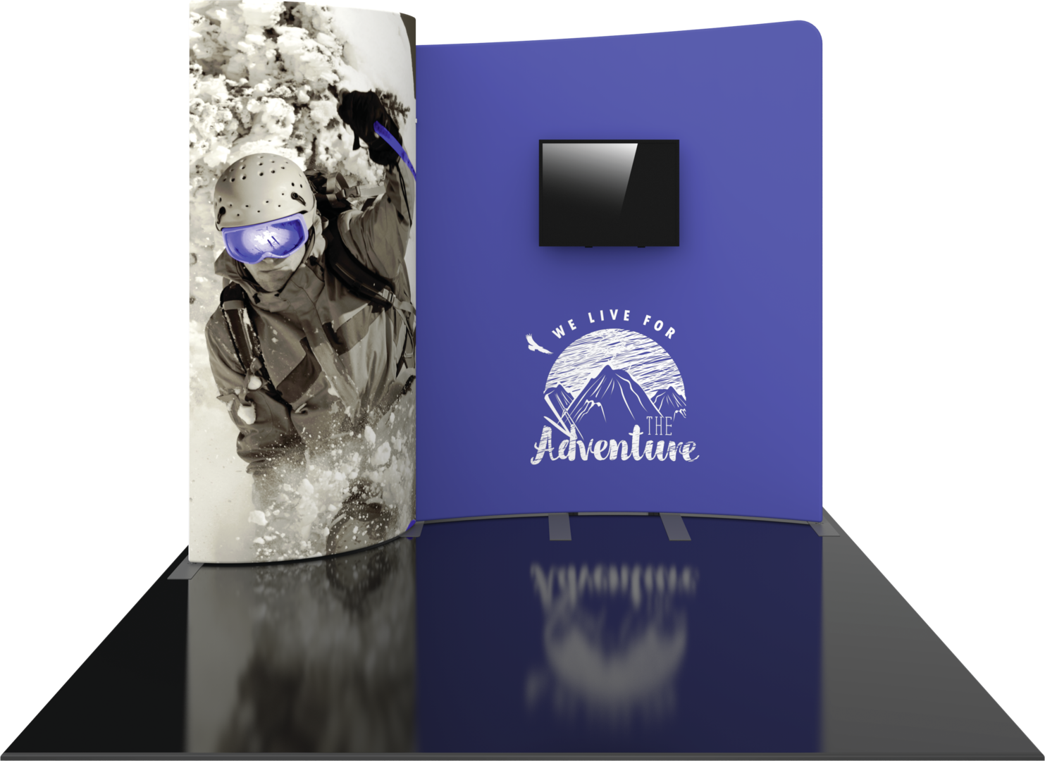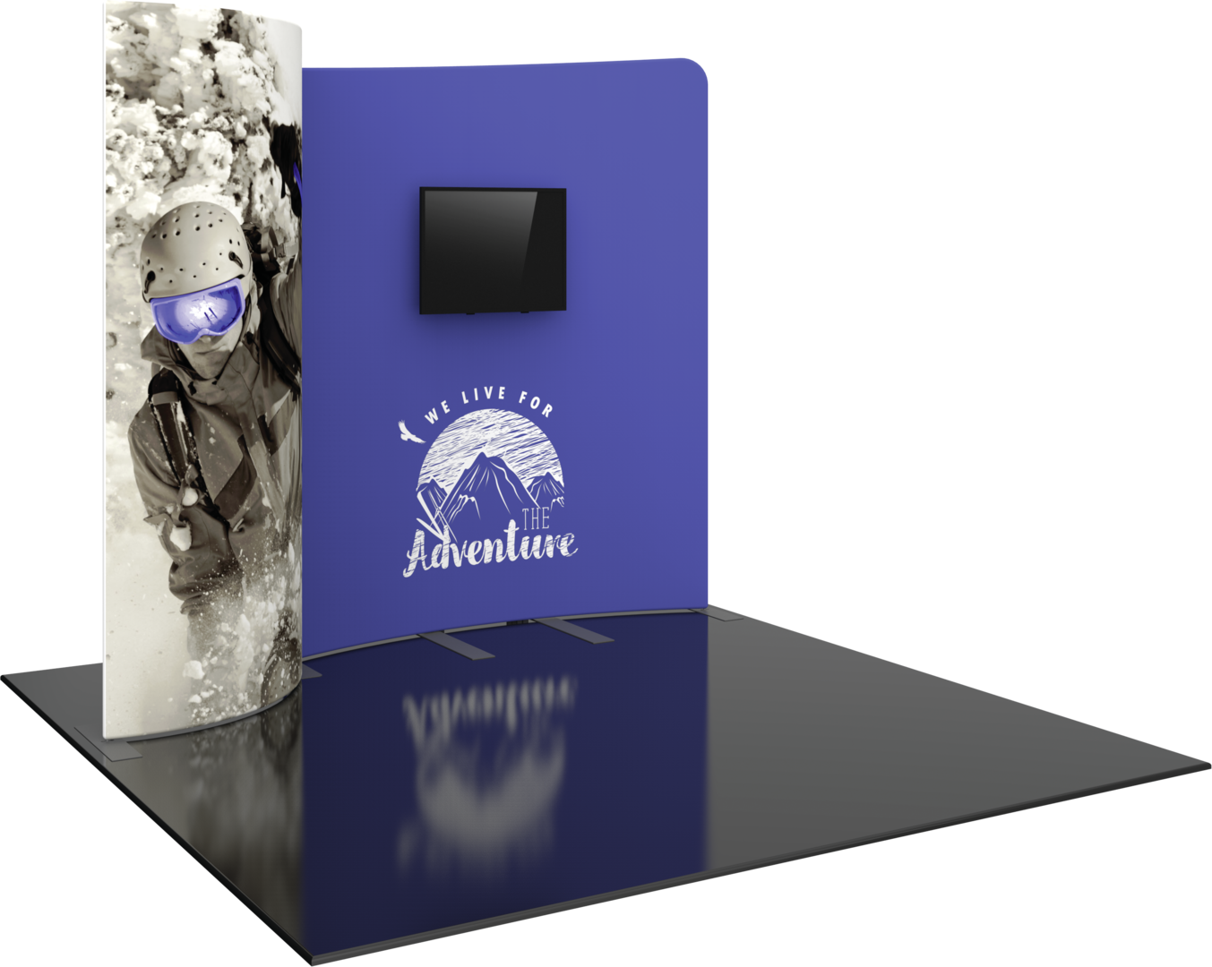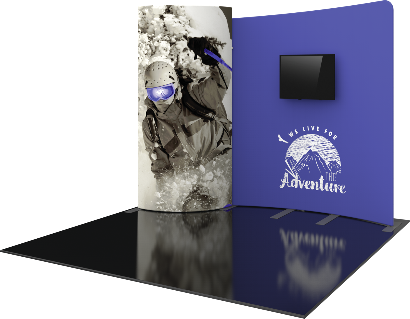 Formulate® Designer Series 10ft Fabric backwall Kit 01 has unique stylistic features and shapes, is portable, and is easy to assemble. The two aluminum tube frames feature spigot connections and zipper pillowcase fabric graphics. A curved panel draws the eye, and an integrated monitor mount that holds a medium monitor makes it easy to incorporate digital messaging. Designer Series Kit 01 comes in two portable, wheeled transit cases for easy storage and transport. Assembly and graphic attachment are easy - simply pull the pillowcase fabric graphics over the frame and zip.