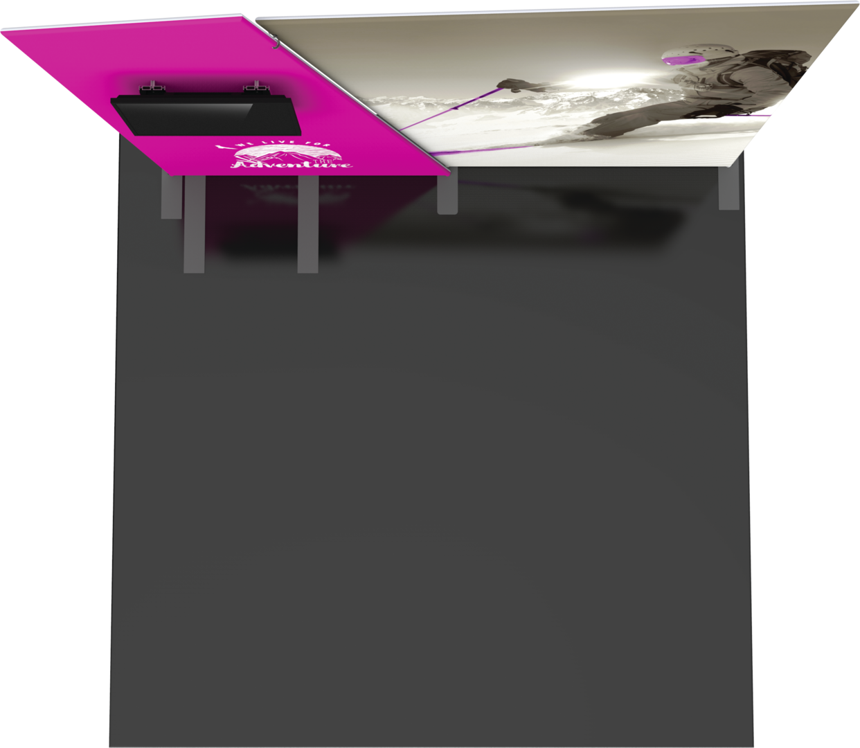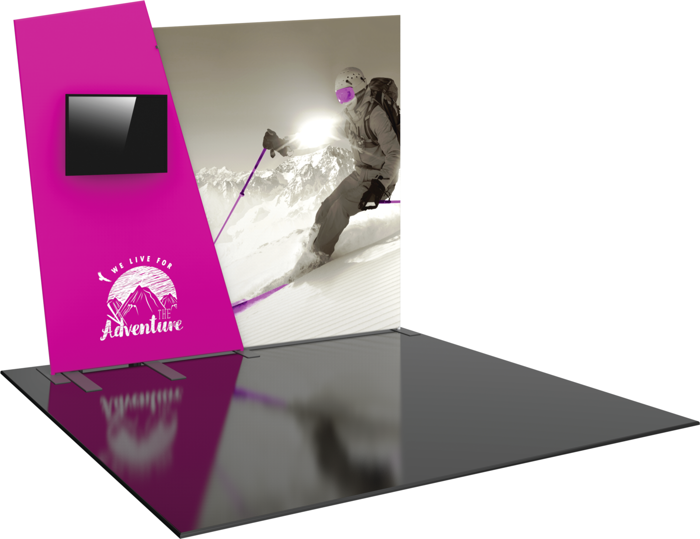 Formulate® Designer Series 10ft Fabric backwall Kit 07 is a sleekly designed exhibit that includes two aluminum tube frames featuring spigot connections, a kiosk supporting a medium monitor mount for multimedia display, and simple pullover zipper pillowcase fabric graphics. Designer Series Kit 07 comes in two portable, expandable wheeled transit cases for easy storage and transport. Assembly and graphic attachment is easy - simply pull the pillowcase fabric graphics over the frame and zip.