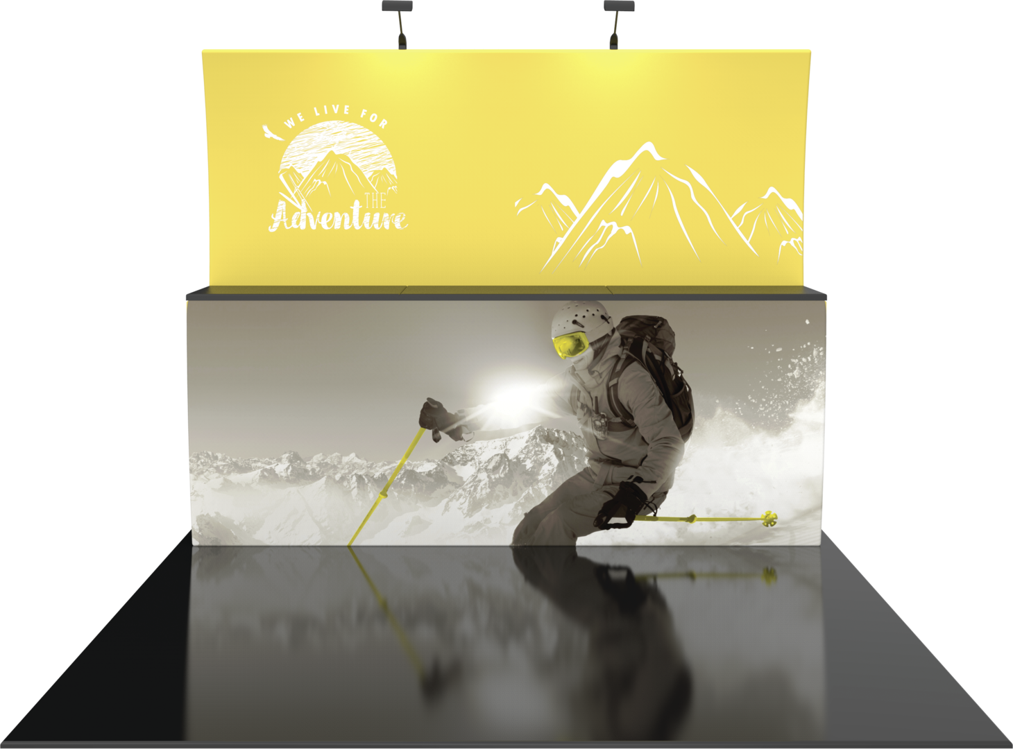 Formulate® Designer Series 10ft Fabric backwall Kit 13 includes a unique backwall featuring a counter top that runs along the center adding real estate for product display and more. The Kit includes an aluminum tube frame with snap-button/spigot connections, and two zipper pillowcase fabric graphics. Designer Series Kit 13 comes in two portable, wheeled transit cases for easy storage and transport. Assembly is easy - simply connect the tubes, pull the pillowcase fabric graphics over the frame, zip, then add the counter tops.