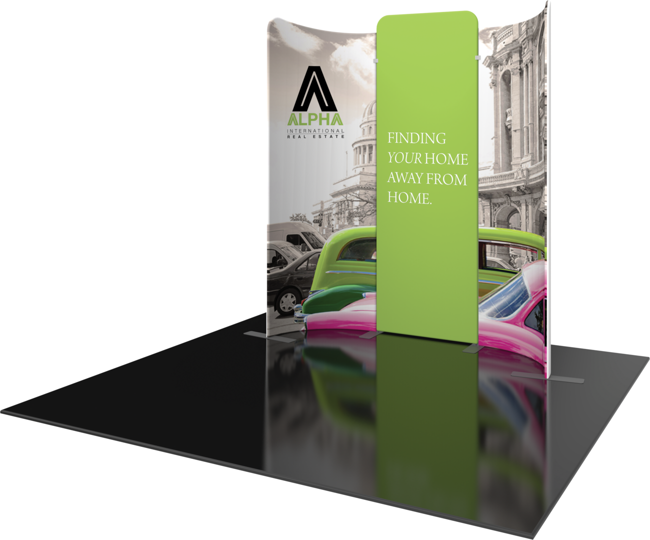 Modulate 10ft Kit 09 consists of two curved, magnetic fabric banners and one straight fabric banner. Create an impact with a stylish 10ft wide inline display and/or repurpose as individual banners and maximize your value!
