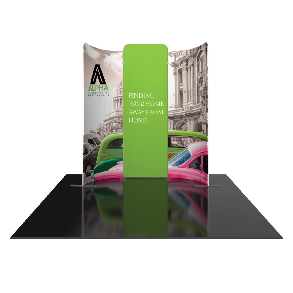 Modulate 10ft Kit 09 consists of two curved, magnetic fabric banners and one straight fabric banner. Create an impact with a stylish 10ft wide inline display and/or repurpose as individual banners and maximize your value!