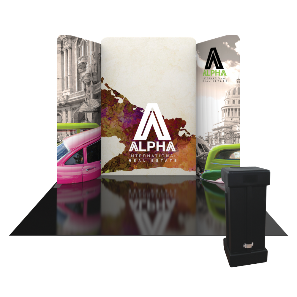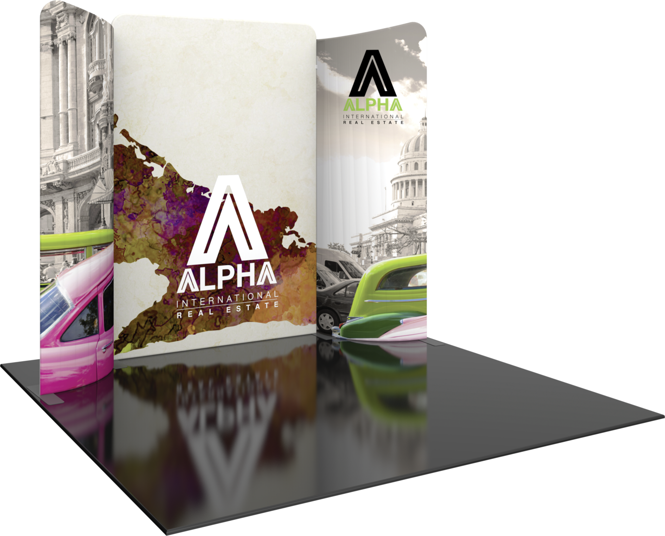 Modulate 10ft Kit 10 consists of two curved, magnetic fabric banners and one straight, magnetic fabric banner. Create an impact with a stylish 10ft wide inline display and/or repurpose it as individual banners and maximize your value!