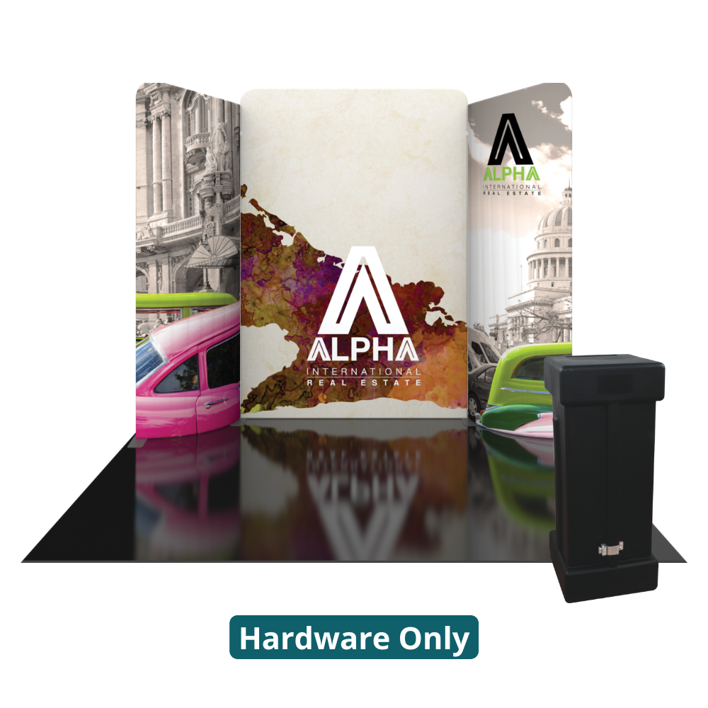 Modulate 10ft Kit 10 consists of two curved, magnetic fabric banners and one straight, magnetic fabric banner. Create an impact with a stylish 10ft wide inline display and/or repurpose it as individual banners and maximize your value!