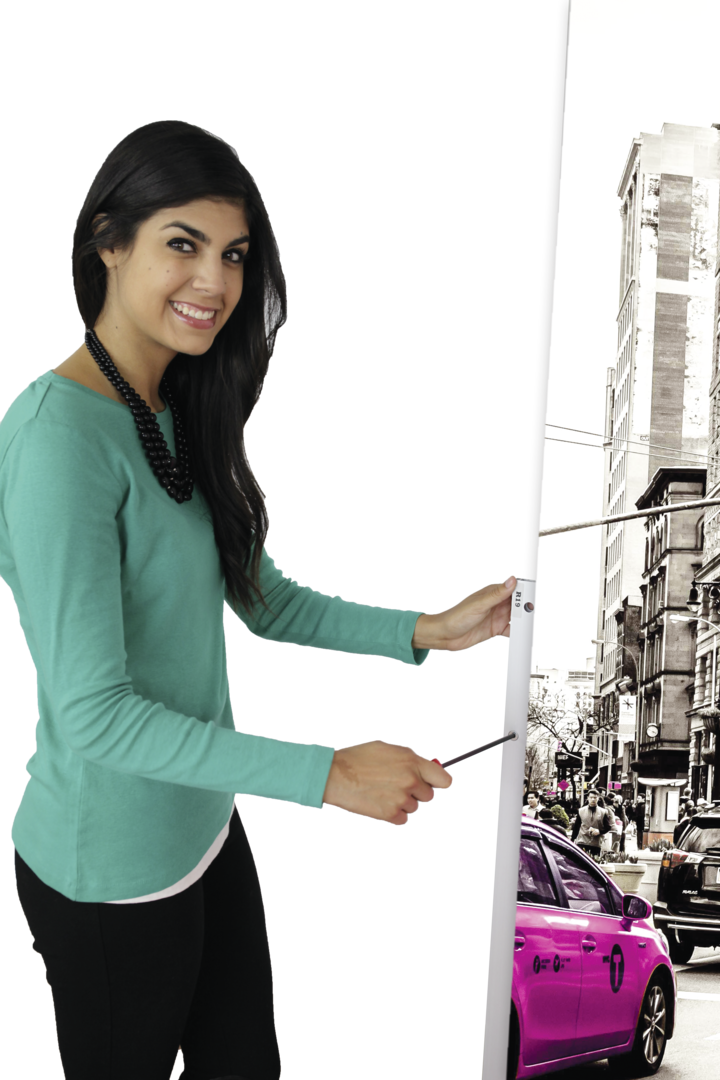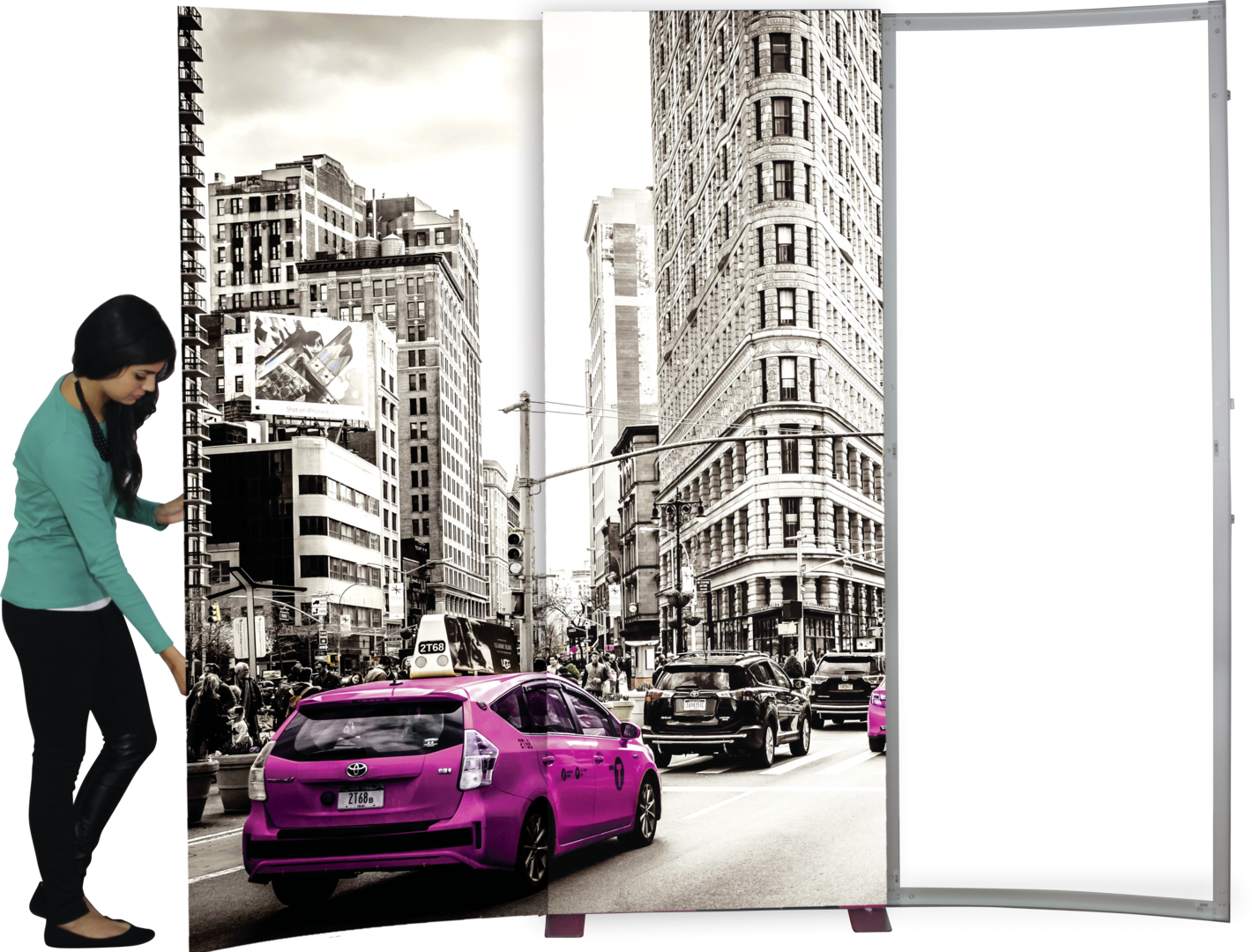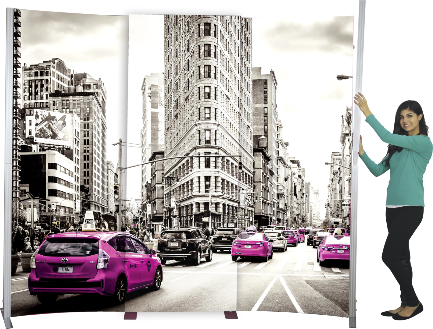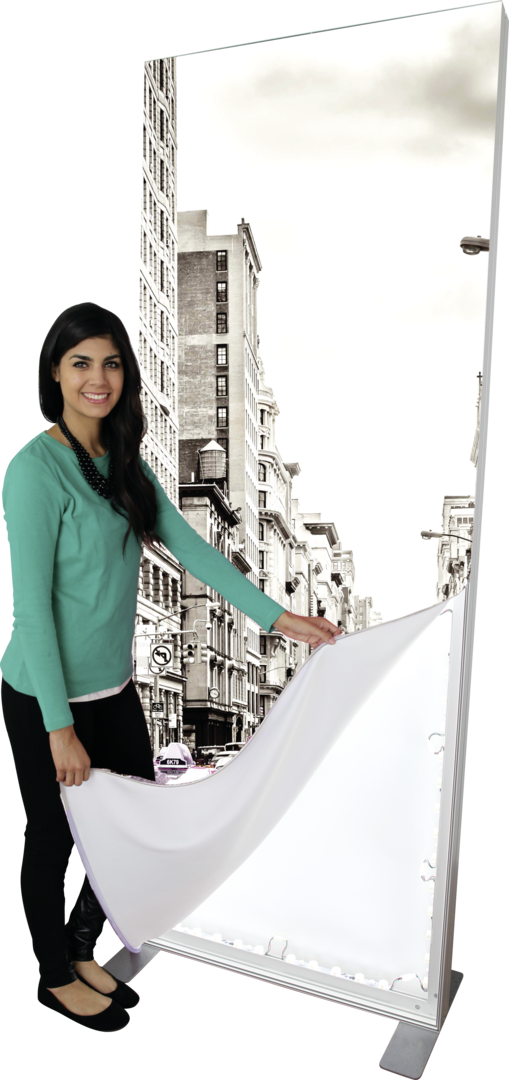 - Single-sided SEG dye-sublimated push-fit fabric graphics