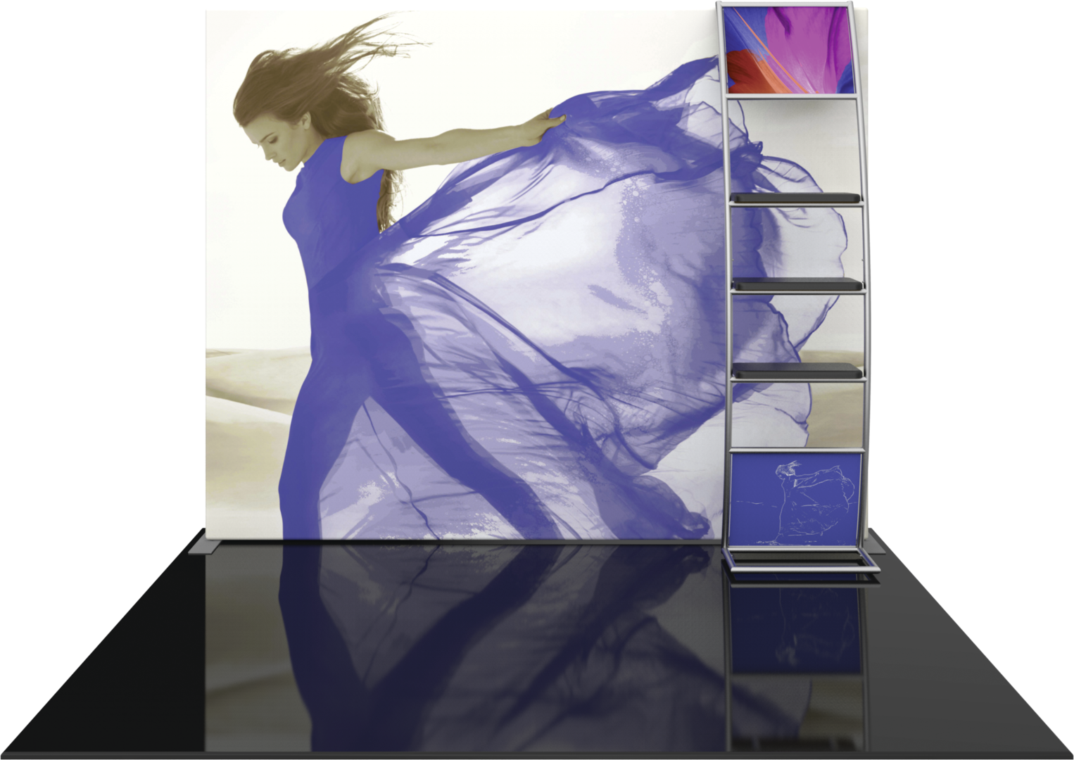 The Formulate® S6 Straight 10ft Fabric Display is the ideal display solution for making an impact at your next event or trade show. The S6 Straight Formulate display comes with a tubular backwall frame and an accent ladder with three shelves, perfect to display small products. Stretch fabric graphics are hand-sewn, durable, and dry-cleanable.