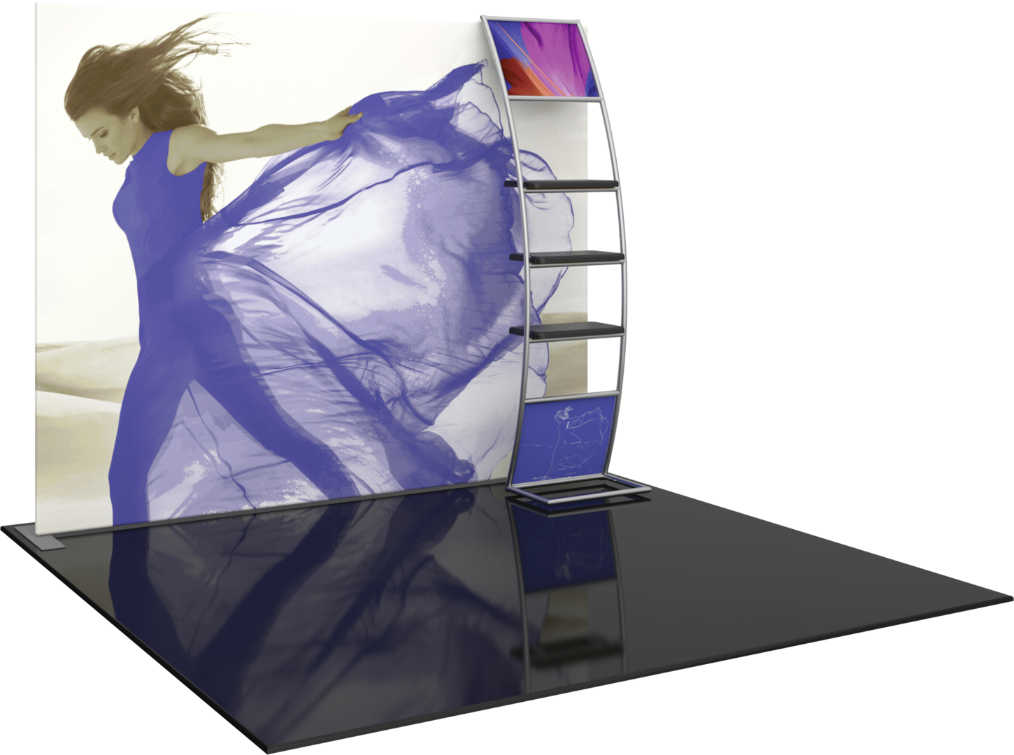 The Formulate® S6 Straight 10ft Fabric Display is the ideal display solution for making an impact at your next event or trade show. The S6 Straight Formulate display comes with a tubular backwall frame and an accent ladder with three shelves, perfect to display small products. Stretch fabric graphics are hand-sewn, durable, and dry-cleanable.