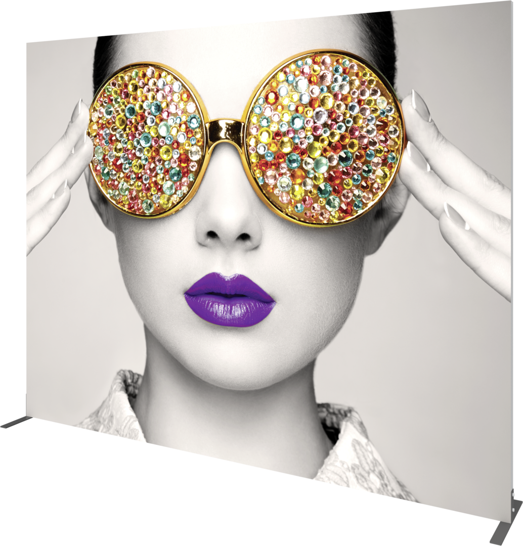 Vector Frame™ fabric banner R05 is a modern, extrusion-based fabric graphic banner display measuring 118.98"W x 94.74"H. The 2" aluminum extrusion frames are easy to assemble and disassemble and come with the choice of single-sided or double-sided push-fit SEG fabric graphic murals. Vector Frame banner R05 can be used to display messaging or art in a retail, corporate, event or trade show environment and more.