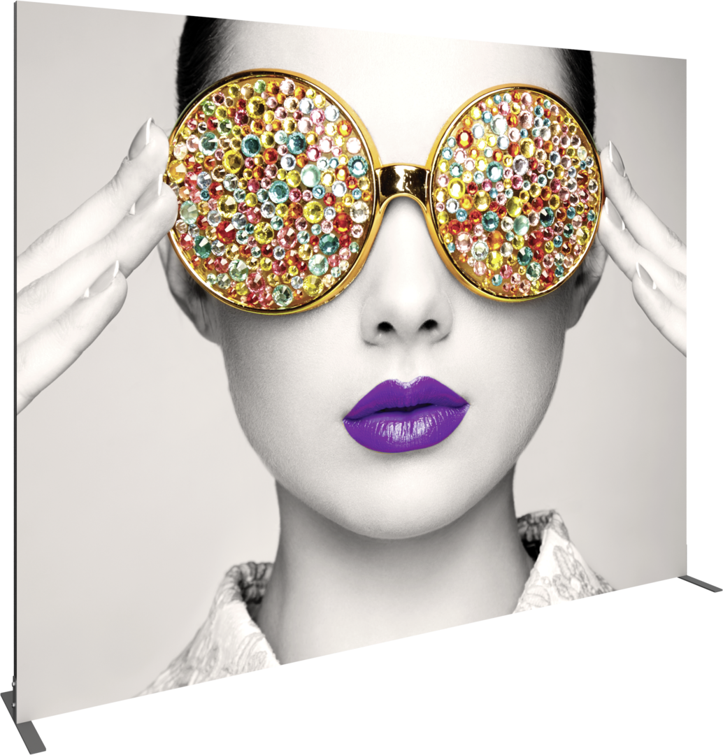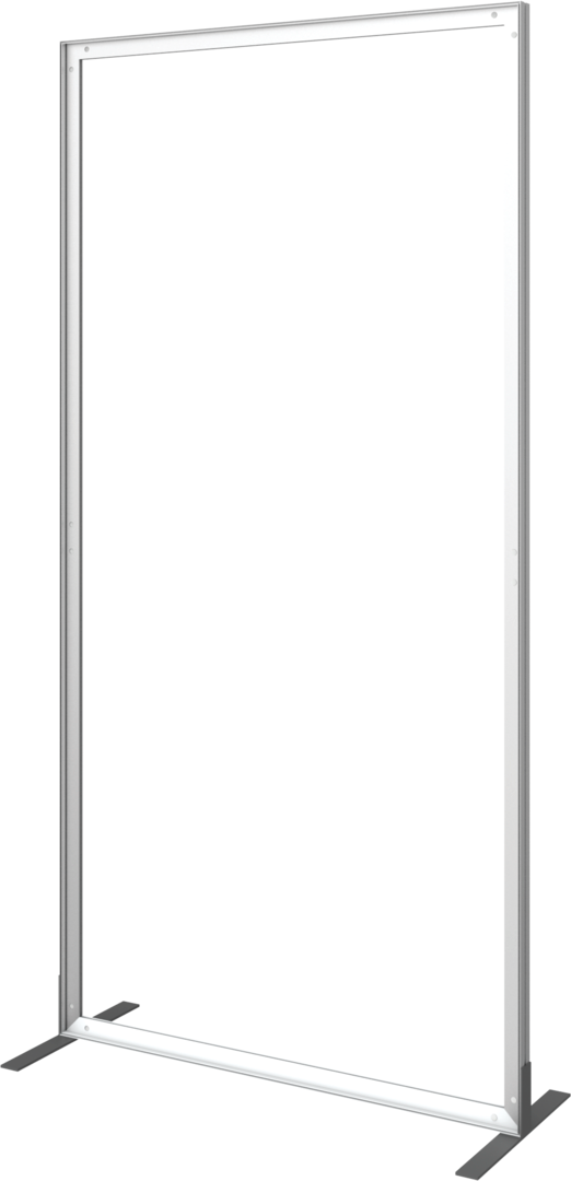 Vector Frame™ fabric banner R05 is a modern, extrusion-based fabric graphic banner display measuring 118.98"W x 94.74"H. The 2" aluminum extrusion frames are easy to assemble and disassemble and come with the choice of single-sided or double-sided push-fit SEG fabric graphic murals. Vector Frame banner R05 can be used to display messaging or art in a retail, corporate, event or trade show environment and more.