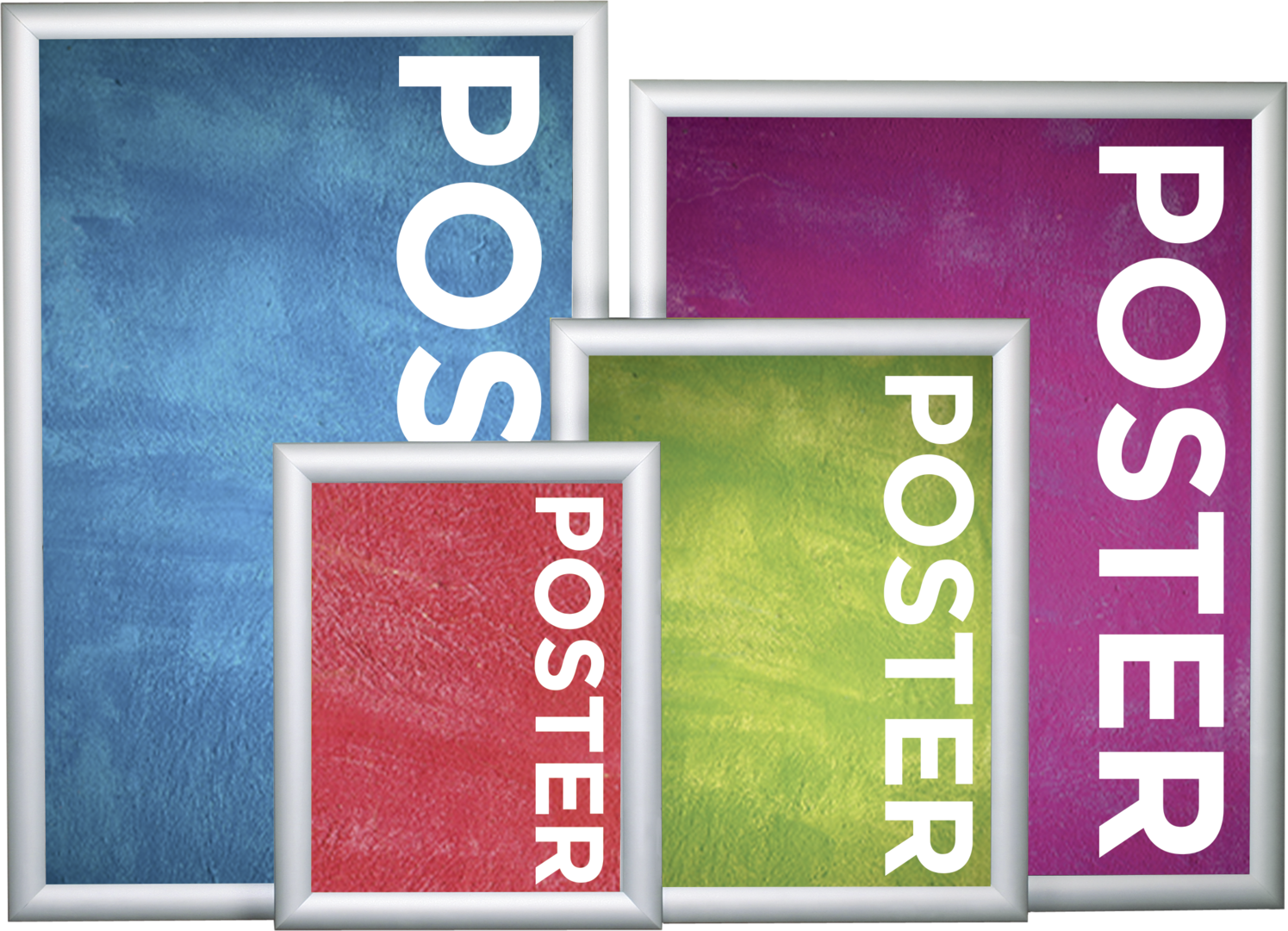 Trappa Poster Frames feature snap-edges, which easily open from the front to allow for quick and easy, graphic changes with no tools required. This sleek framing system features a set of spring-loaded aluminum extrusions mounted to a high-impact polystyrene backer, and frames are available in a variety of sizes and in black or silver finishes. All frames come standard with a clear non-glare lens, fully assembled, and ready to hang. Custom sizes are also available.