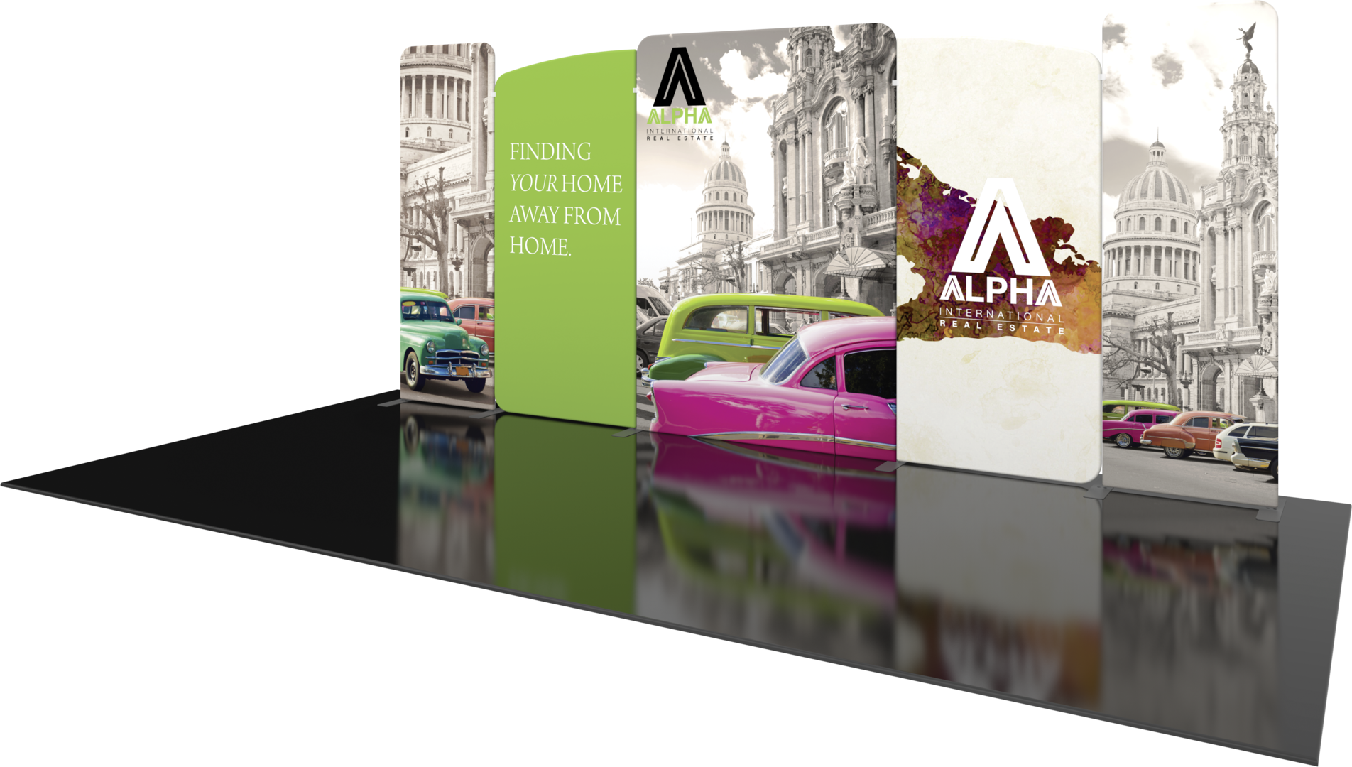 Modulate 20ft Kit 02 consists of five straight, magnetic fabric banners. Kit 02 can reconfigure into two 10ft kits (MOD-10-03-M-TL & MOD-10-04-M-TL) and can also be repurposed as individual banners. Versatile, simple, and smart displays help exhibitors maximize their display value.