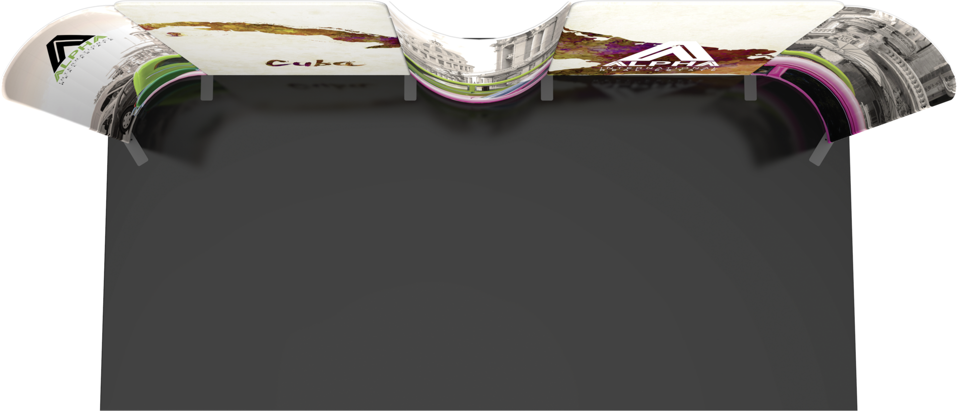 Modulate 20ft Kit 05 consists of three curved and two straight, magnetic banners. Kit 05 can reconfigure into a 10ft display (MOD-10-10-M-TL) and can also be repurposed as individual banners. Versatile, simple and smart displays help exhibitors maximize their exhibit value.