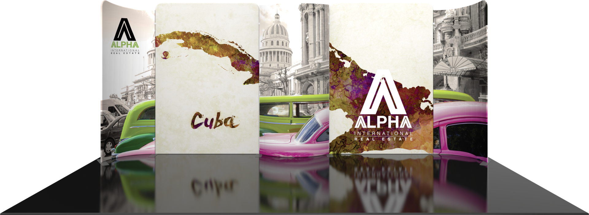 Modulate 20ft Kit 05 consists of three curved and two straight, magnetic banners. Kit 05 can reconfigure into a 10ft display (MOD-10-10-M-TL) and can also be repurposed as individual banners. Versatile, simple and smart displays help exhibitors maximize their exhibit value.