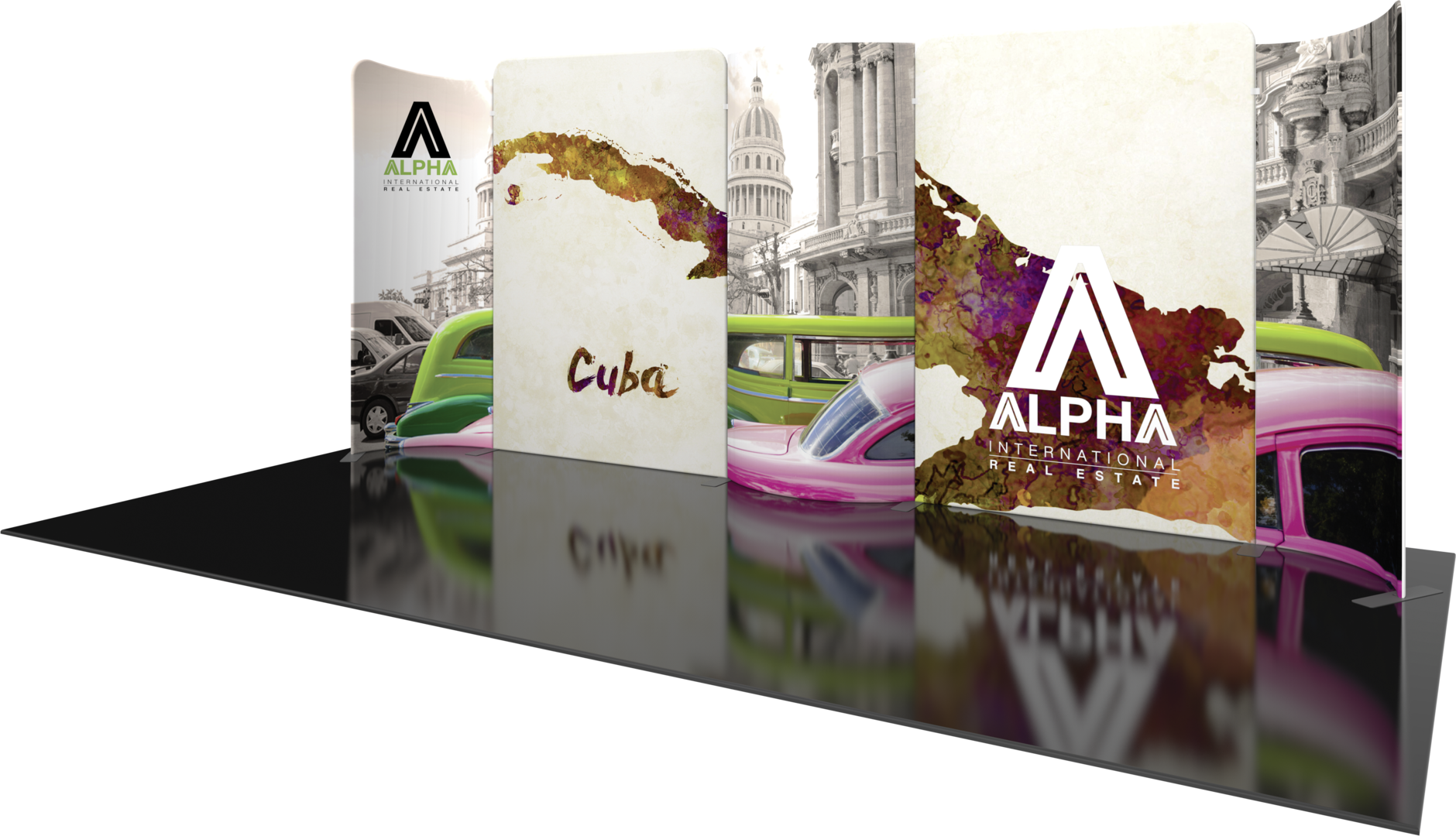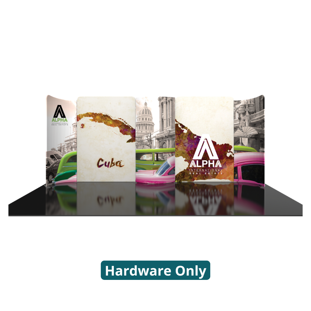 Modulate 20ft Kit 05 consists of three curved and two straight, magnetic banners. Kit 05 can reconfigure into a 10ft display (MOD-10-10-M-TL) and can also be repurposed as individual banners. Versatile, simple and smart displays help exhibitors maximize their exhibit value.