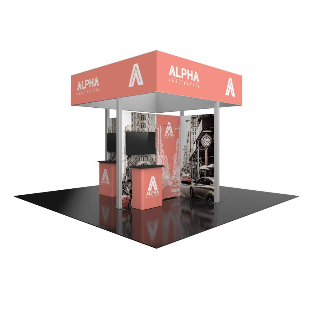 - Features 12'w x 3'h square fabric structure up high to draw visitors to the booth