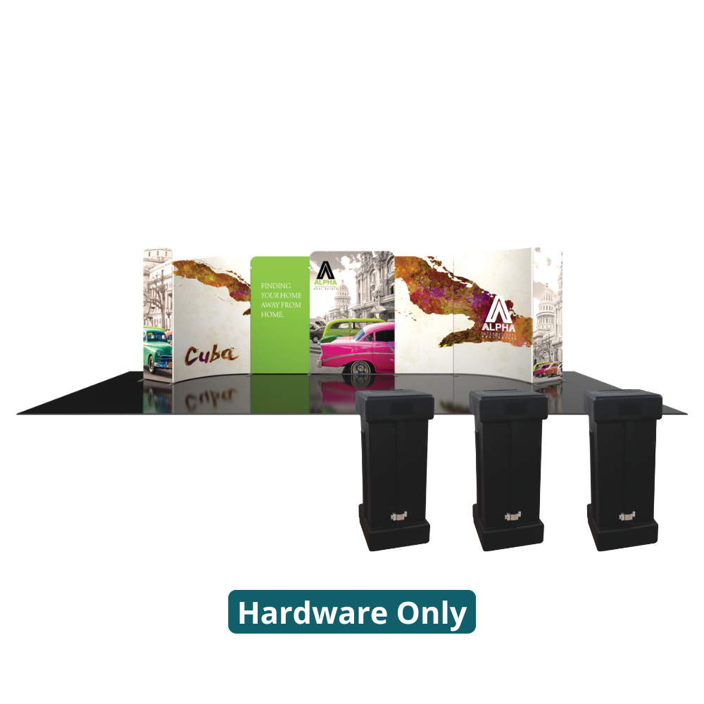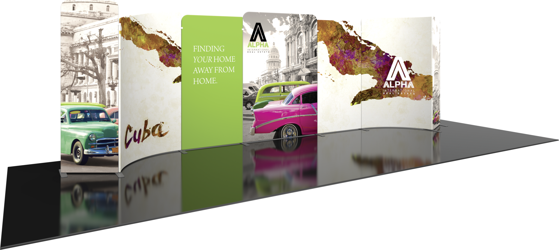 Modulate 30ft Kit 04 consists of five straight and two curved, magnetic banners. Kit 04 reconfigures into a 20ft wide display, OR into two 10ft wide displays. Maximize your value in this versatile, reconfigurable system.