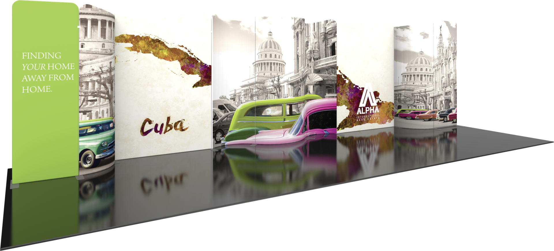 Modulate 30ft Kit 05 consists of four curved and five straight, magnetic banners. Kit 05 reconfigures into a 20ft wide display, OR into two 10ft wide displays. Maximize your value in this versatile, reconfigurable system.