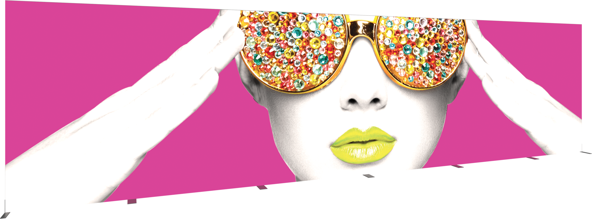 Vector Frame™ fabric light box Rectangle 08 spans nearly 30ft wide and features a durable 100mm aluminum extrusion frame, one large, seamless push-fit backlit fabric graphic, and LED edge lighting. Single and double-sided graphic options are available. LED lights to come adhered to the frame, making set-up as simple as assembling the frame, applying the push-fit graphics, and plugging in the electrical cord! Vector Frame Light Box R08 is ideal for use in retail, event, corporate, and trade show environments as an illuminated messaging solution.