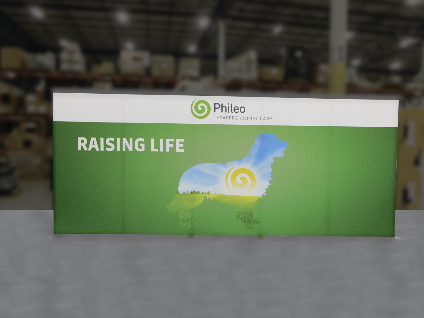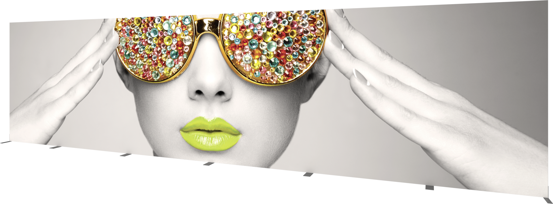 Vector Frame™ fabric banner R08 is a modern, near 30ft wide extrusion-based fabric banner display. The 2" aluminum extrusion frame is easy to assemble and disassemble and comes with the choice of one large, seamless single-sided or double-sided push-fit SEG fabric graphic. Vector Frame banner R08 is an ideal display for retail, corporate, event and trade show environments.