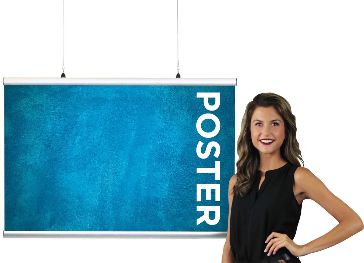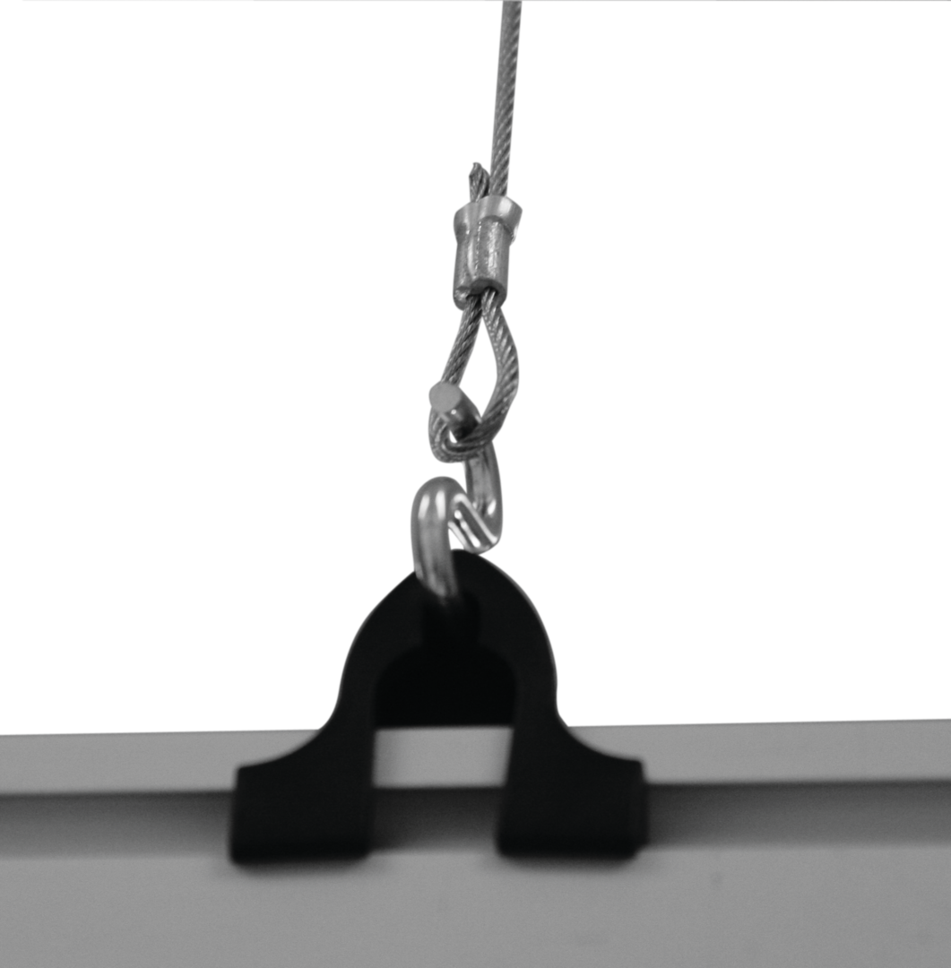 The Poster Snapper is a low-cost, high grip aluminum snap rail system with a clean, simple, elegant look. The adjustable hanging clips slide along the top rail to match the desired spacing. The clips feature both a top opening for a clear nylon line mount and a recessed pocket for S-hook suspension. The rails snap open and shut for quick graphic changes. Custom kits with lengths up to 60in are available.