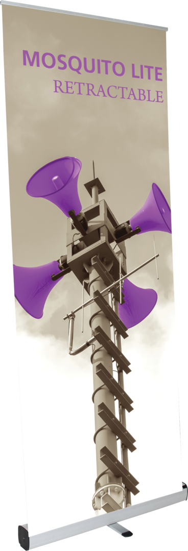 The Mosquito Lite retractable banner stand is a lighter-weight version of the Mosquito 800. The Mosquito Lite is easy to use with a snap rail and bungee pole, making set up, take down, and shipping simple. It is available for purchase in bulk packs of six or individually.