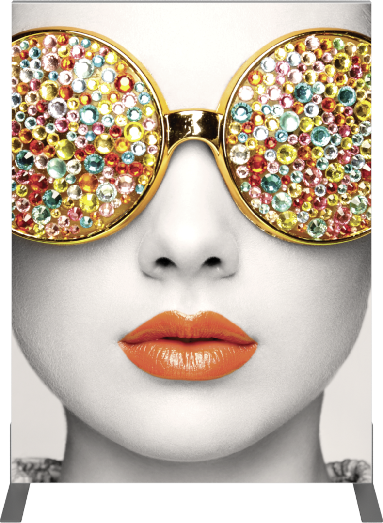 Vector Frame™ fabric banner R01 is a modern, extrusion-based fabric graphic banner display measuring 36.3"W x 47.49"H. The 2" aluminum extrusion frames are easy to assemble and disassemble and come with the choice of single-sided or double-sided push-fit SEG fabric graphic murals. Vector Frame banner R01 can be used to display messaging or art in a retail, corporate, event or trade show environment and more.