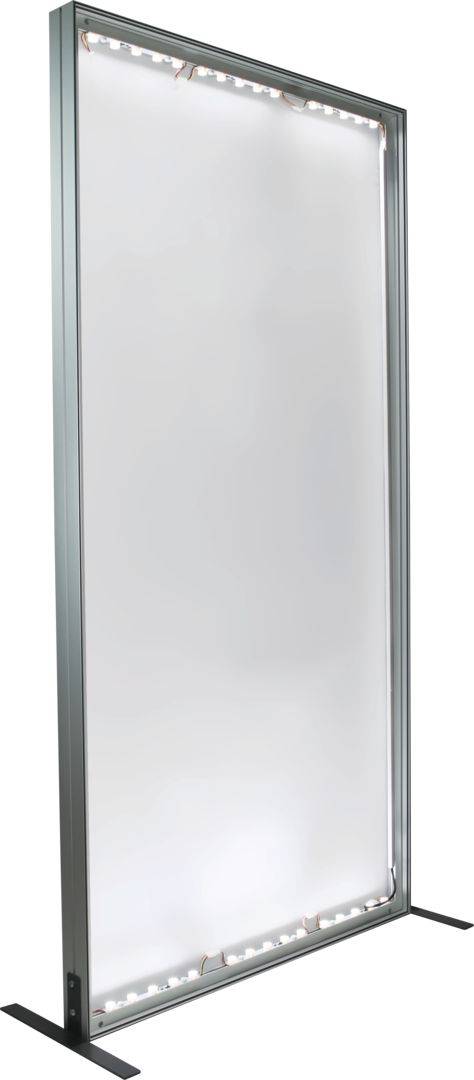 Vector Frame™ fabric light box Rectangle 02 features durable 100mm aluminum extrusion frames, push-fit backlit fabric graphics and LED edge lighting, and measures 36.3"W x 71.12"H . Single and double-sided graphic options are available. LED lights come adhered to the frame, making set-up as simple as assembling the frame, applying the push-fit graphics and plugging in the electrical cord! Vector Frame Light Box R02 is ideal for use in retail, event, corporate and trade show environments as an illuminated messaging solution.