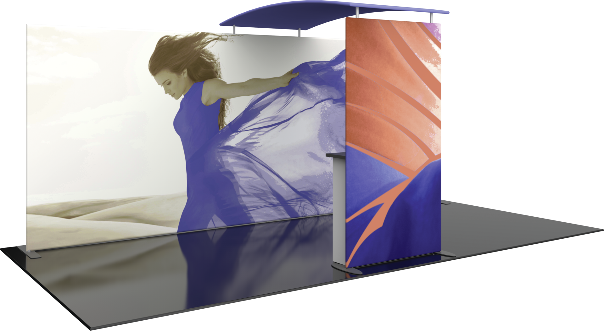 The Formulate® Master Backwall Accent 06 is an ideal dimensional accessory to connect to a Formulate Master 20ft or 30ft straight backwall that is being used in a Peninsula or Island exhibit space. It features a simply tube frame, pillowcase fabric graphic canopy, and table top and connects easily to create the appearance of one seamless display.