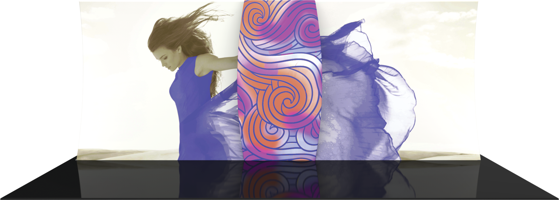 Formulate® Backwall Connector 01 is an ideal accessory to connect two 10ft or 20ft Formulate Master backwalls (excluding VC6). It features a curved tubular frame, and pillowcase fabric graphic and connects easily to create the appearance of one seamless display and more real estate for messaging.
