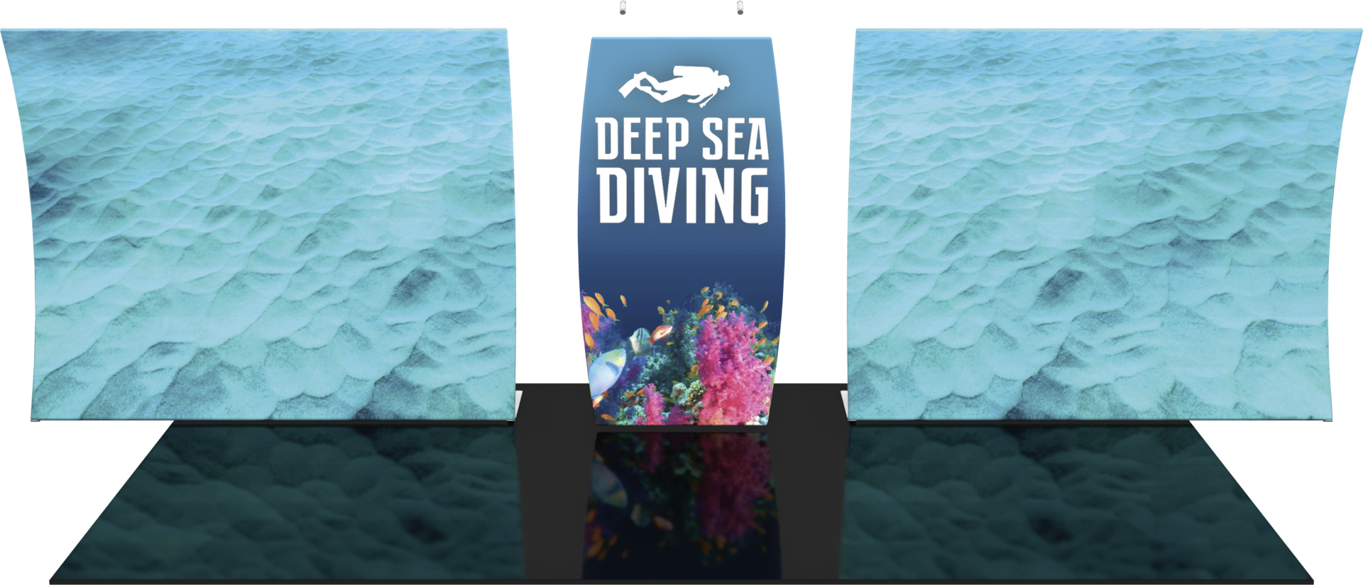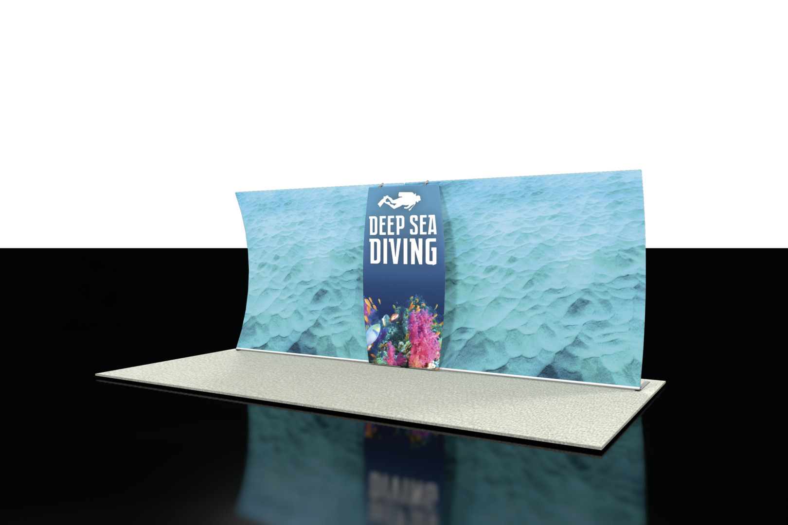 Formulate® Backwall Connector 01 is an ideal accessory to connect two 10ft or 20ft Formulate Master backwalls (excluding VC6). It features a curved tubular frame, and pillowcase fabric graphic and connects easily to create the appearance of one seamless display and more real estate for messaging.