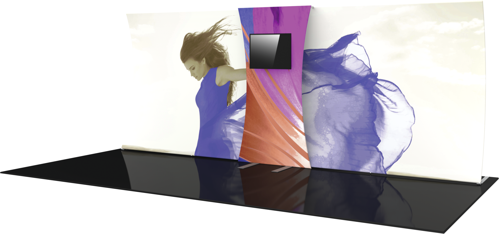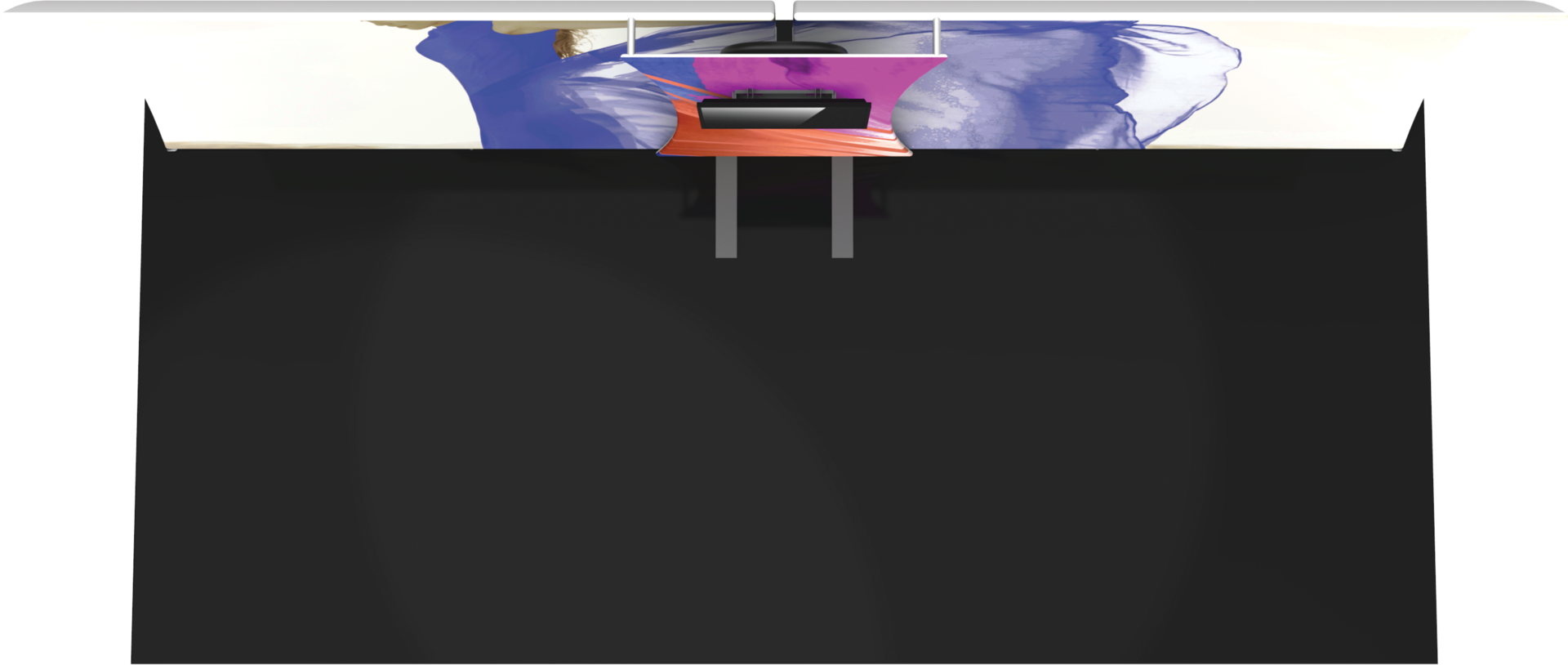 Formulate® Backwall Connector 05 is an ideal accessory to connect two 10ft or 20ft Formulate Master backwalls (excluding VC6) to create the appearance of one seamless display. The bowtie-shaped connector includes a tubular frame, a monitor kiosk supporting a medium monitor for multimedia presentations, and a pillowcase fabric graphic.