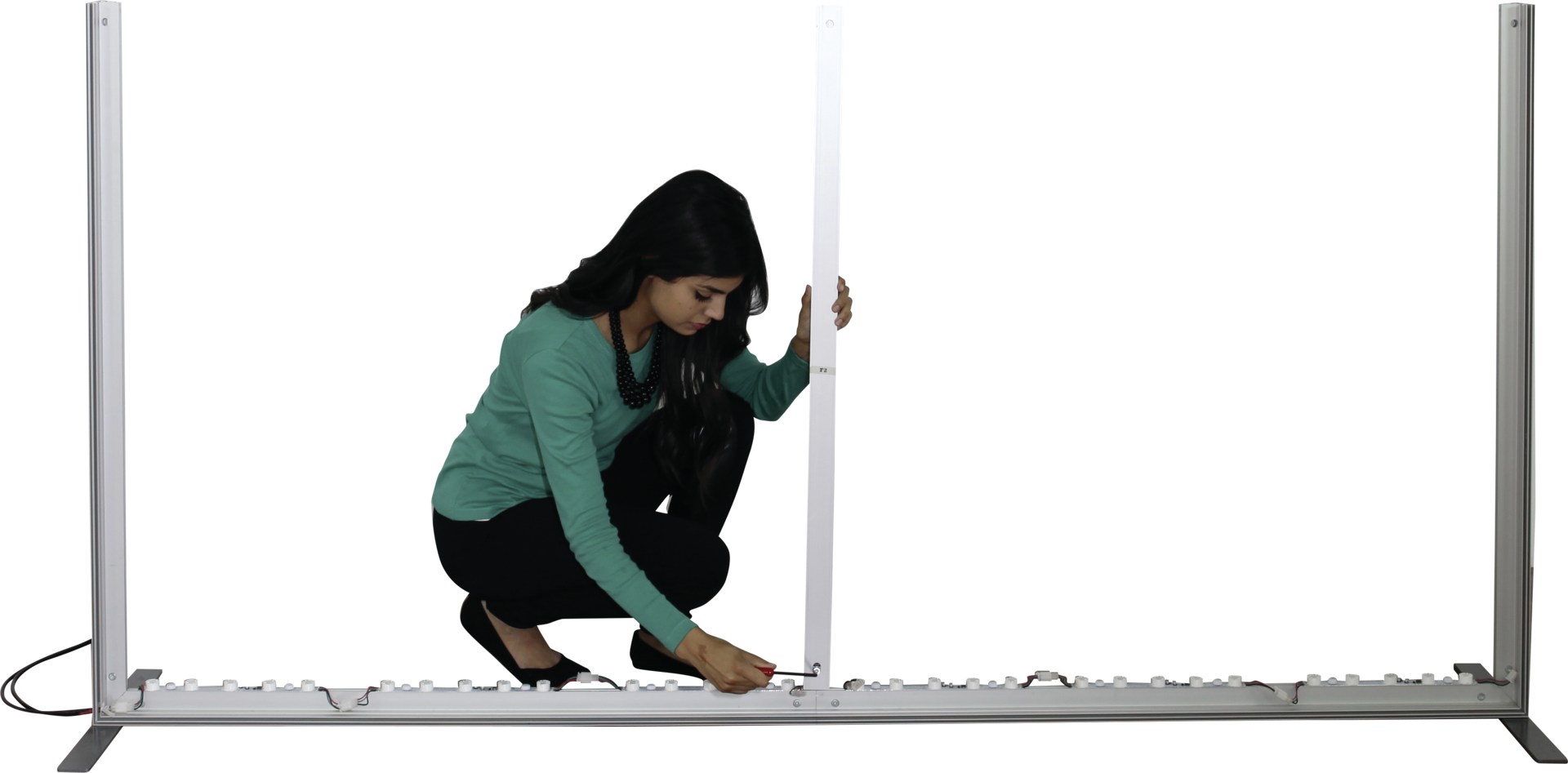 Vector Frame™ fabric light box Rectangle 04 features durable 100mm aluminum extrusion frames, push-fit backlit fabric graphics and LED edge lighting, and measures 48.11"W x 94.74"H . Single and double-sided graphic options are available. LED lights to come adhered to the frame, making set-up as simple as assembling the frame, applying the push-fit graphics, and plugging in the electrical cord! Vector Frame Light Box R04 is ideal for use in retail, event, corporate, and trade show environments as an illuminated messaging solution.