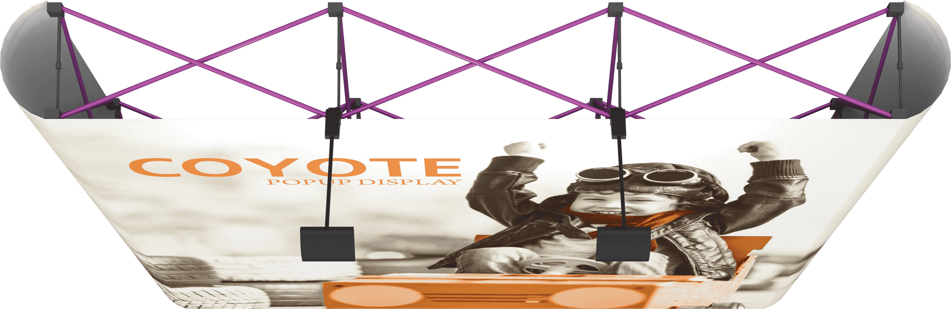 The superior and widely popular Coyote™ Pop-up collapsible display system combines strength, reliability, and style. Featuring lightweight, purple collapsible aluminum frames, magnetic channel bars, and magnet-applied rollable UV graphic panels or fabric panels, Coyote displays are an easy way to make an impact at any event or tradeshow.