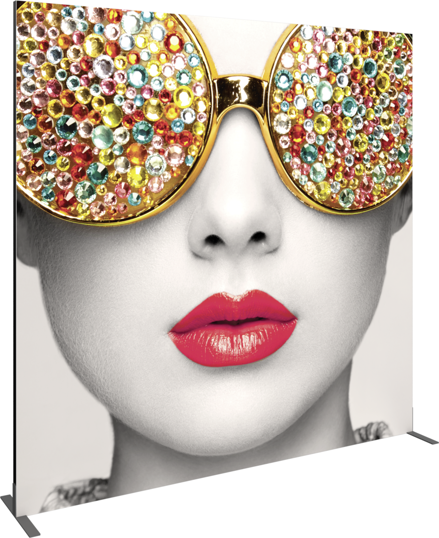 Vector Frame™ fabric banner S04 is a modern, extrusion-based fabric graphic banner display measuring 95.35"W x 94.74"H. The 2" aluminum extrusion frames are easy to assemble and disassemble and come with the choice of single-sided or double-sided push-fit SEG fabric graphic murals. Vector Frame banner S04 can be used to display messaging or art in a retail, corporate, event or trade show environment and more.
