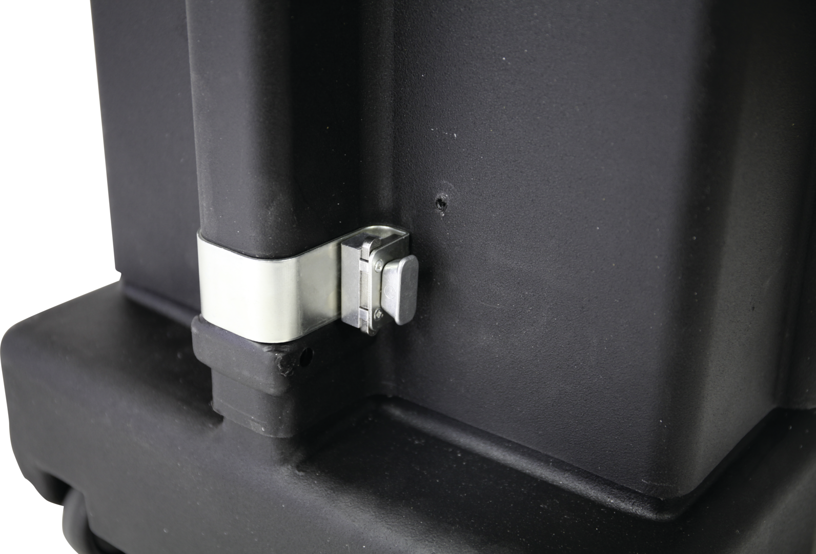 This adjustable roto-molded expandable display case is the perfect protective shipping and/or storage case for all Formulate® exhibit kits, hanging structures and many more display products. With an adjustable lid and heavy-duty latch, you can adjust the height from 40" in increments to 64". Built-in wheels and a sturdy handle make the case portable and easy to transport, and an optional stretch wrap graphic turns your shipping case into a professional, versatile counter.