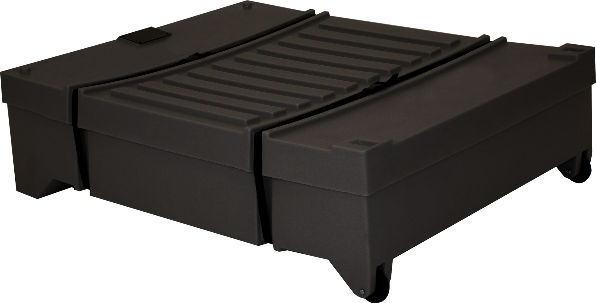 This black transit case is the perfect, premium protective freight shipping case for a variety of large exhibits. An interlocking surface enables two cases to be transported together. Secure reinforced straps assure the case will remain closed during transportation. A maximum case depth of 8" allows up to eight flat panels per case.